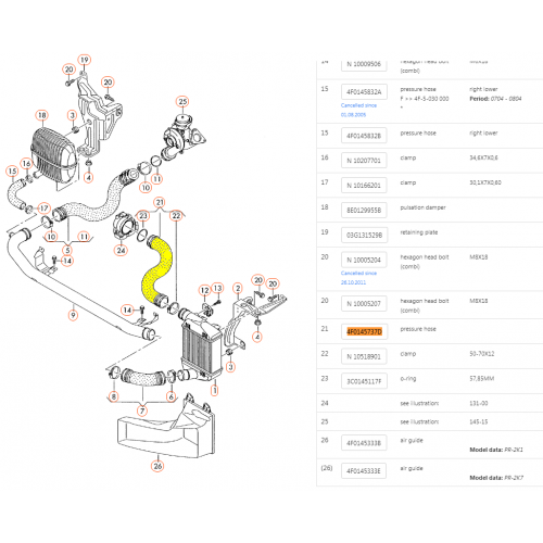 4F0145737D Audi A6 Intercooler cső 4F0145737D